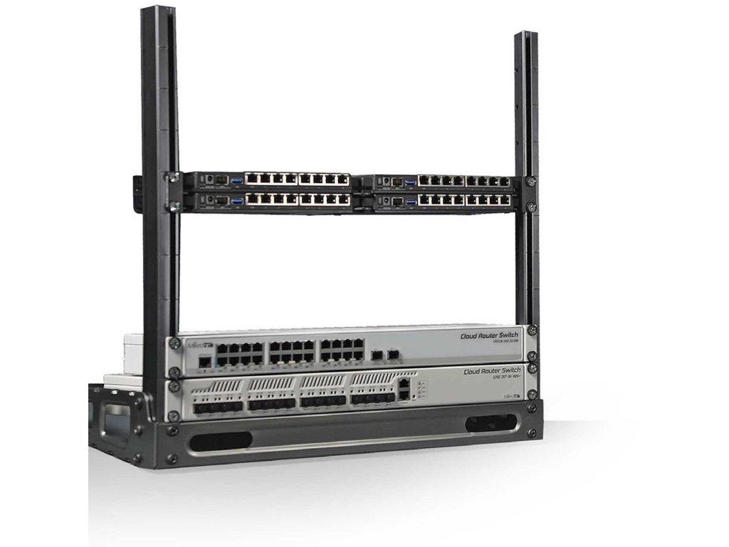 Stojan je kompatibilný so všetkými zariadeniami Mikrotik (a iných výrobcov), ktoré sa zmestia do štandardného 19" stojana.