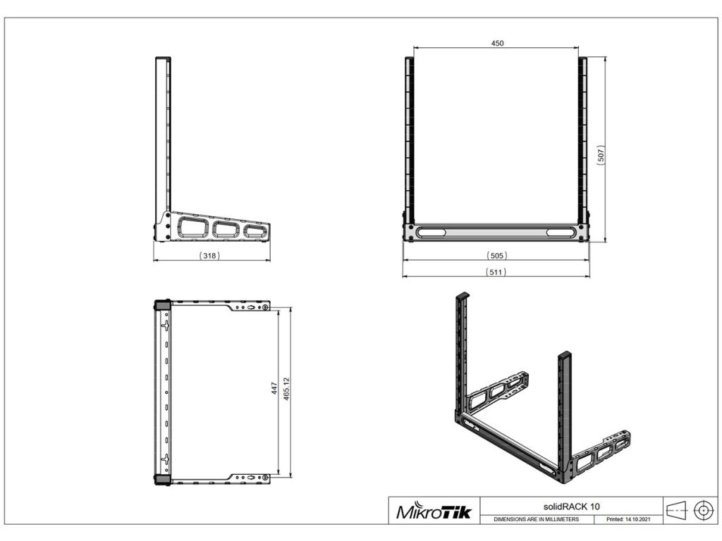 MikroTik SR-10U, rack 19" 10U, čierny. Stojan s nastaviteľným uhlom a dodatočným priestorom na vedenie káblov. Je určený na montáž zariadení, ku ktorým nie je potrebné chrániť prístup serverovými stojanmi. Stojan možno namontovať pod stôl aj na stôl. Môžete k nemu pripojiť predlžovací kábel s viacerými zástrčkami, aby bola práca s ním ešte pohodlnejšia. Stojan je vynikajúcim nástrojom pre správcov systému, inžinierov a testerov.