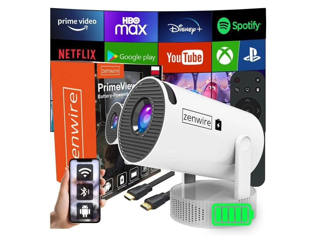 Zenwire K400 Full HD prenosný projektor Android WiFi 6 Bluetooth 5.4 so zabudovanou batériou