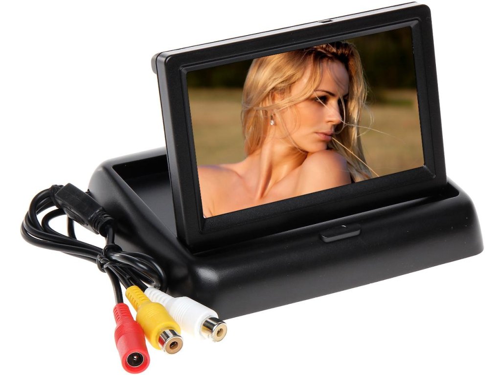 Monitor do auta s uhlopriečkou 4,3" s možnosťou pripojenia dvoch zdrojov videa, napr. cúvacej kamery a prenosného DVD.