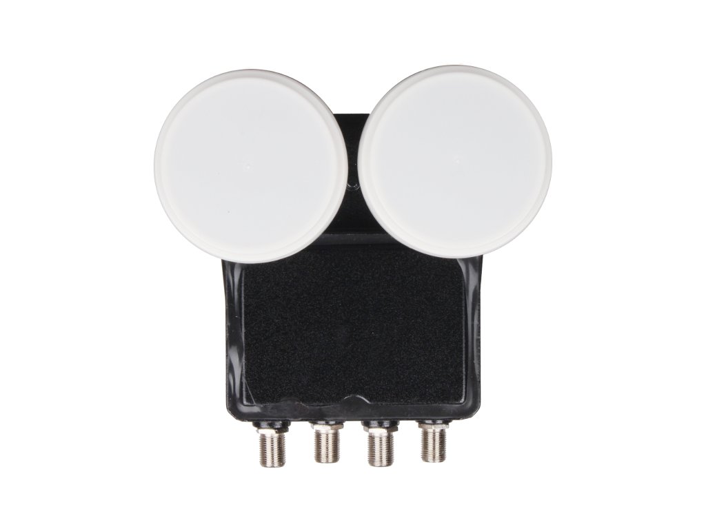 Univerzálny konvertor Monoblock Quad série Black Premium od spoločnosti Inverto so žiaričmi pre satelity vzdialené od seba 6 stupňov na obežnej dráhe (Hot Bird 13E + Astra 19E) so štyrmi výstupmi priamo na 4 prijímače (dekodéry rôznych platforiem) alebo dva duálne PVR prijímače (sledovanie a nahrávanie nezávisle).
