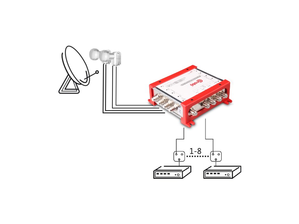 Anténne káble spájajúce signál so zariadením by mali byť najvyššej kvality a mali by spĺňať príslušné technické normy pre správnu prevádzku zariadenia. Zariadenie umožňuje pripojiť až 8 satelitných prijímačov. Multiswitch automaticky rozpozná typ signálu, ktorý sa má prenášať do prijímačov.