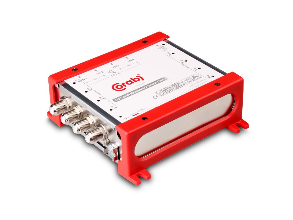 CORAB MULTISWITCH SMART LINE je zariadenie na rozdeľovanie televíznych signálov, má 5 vstupov: 4 satelitné a 1 pozemný a 8 satelitných/pozemných výstupov. Multiprepínač má interné napájanie a vysokokvalitný kryt zaručuje vysokú úroveň tienenia. V prípade príliš silného signálu má zariadenie možnosť znížiť ho o +/- 20bB pomocou prepínača "active".