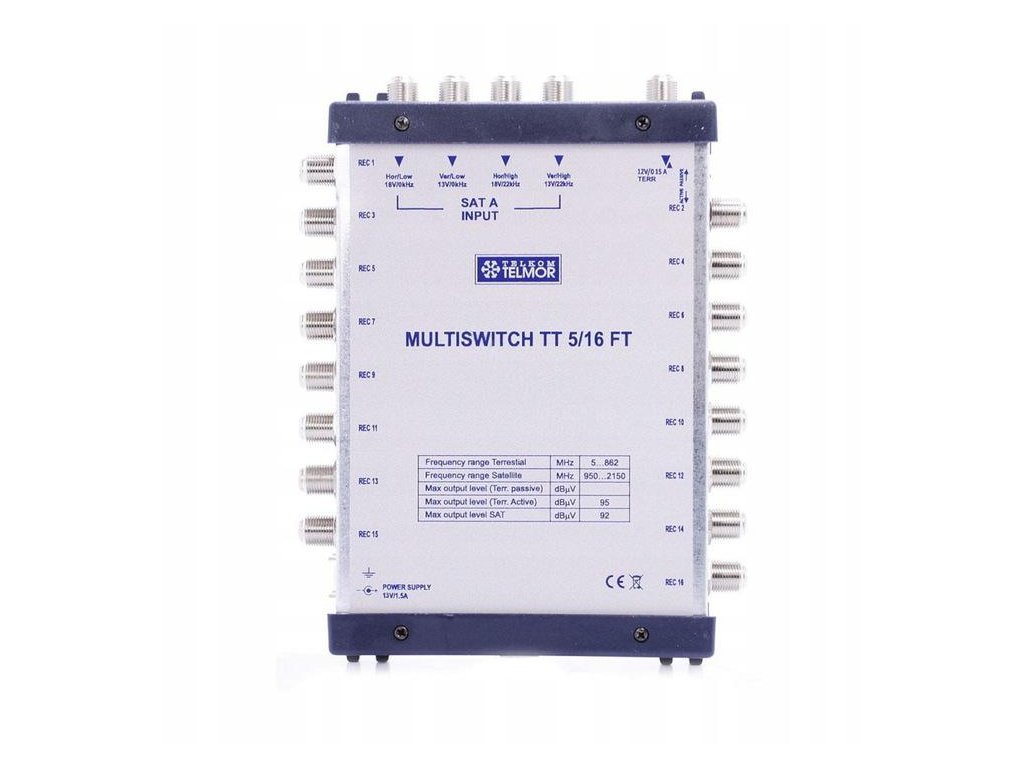 TT-5/16FT patrí do rodiny multiprepínačov, ktoré umožňujú vytvárať veľké a veľmi veľké systémy SMATV. Nové nariadenie ministra dopravy, výstavby a námorného hospodárstva o technických podmienkach, ktoré musia spĺňať budovy, ukladá povinnosť vybudovať multiprepínačové zariadenia v každej novej budove s viacerými bytmi. Nesporné výhody multiprepínačov TT-5/16FT je zabudovaná predkorekcia charakteristiky - sklon charakteristiky. Táto vlastnosť zariadenia v kombinácii s javom útlmu kábla, ktorý sa zvyšuje s rastúcou frekvenciou, umožňuje dosiahnuť vyrovnanie úrovní signálu v účastníckej zásuvke.