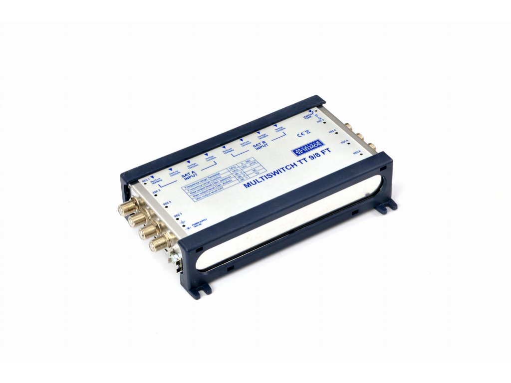 Telmor TT-9/8 FT je moderné a spoľahlivé zariadenie na rozdeľovanie televíznych signálov na8 nezávislých prijímačov iba pomocou 4 káblov zo satelitnej antény.