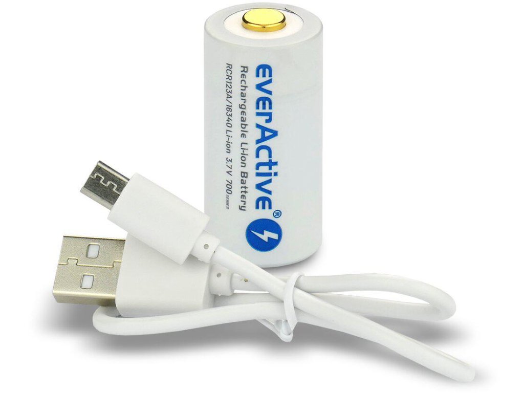 Batéria 16340 everActive máintegrovaná elektronická ochrana. Jej rozmery a menovité napätie sú úplne rovnaké ako u bežnej lítiovej batérie veľkosti CR123, takže ju možno priamo nahradiť!