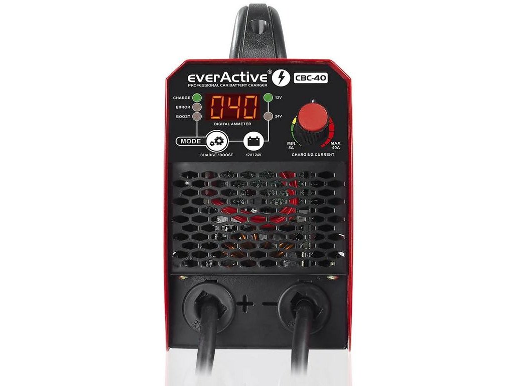 - Nabíjačka everActive CBC-40 umožňuje plynulé nastavenie efektívneho nabíjacieho prúdu od 8 do 40 A bez ohľadu na to, či pripojíte 12V alebo 24V batériu!