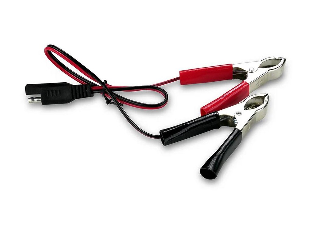 - Krokodílie svorky a očkové konektory obsahuje.