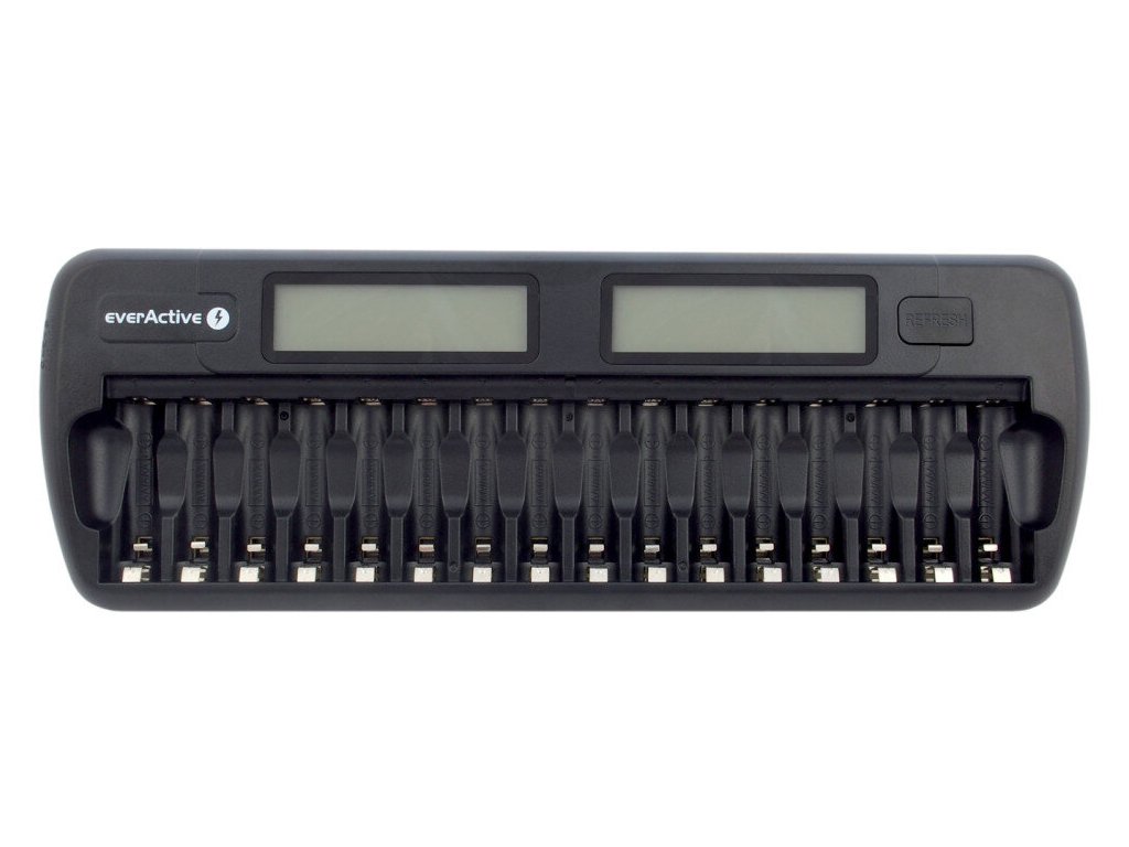 Nabíjačka everActive NC 1600 má až 16 nezávislých nabíjacích kanálov pre Ni-MH akumulátory veľkosti R6/AA alebo R03/AA, každý článok sa nabíja samostatne .