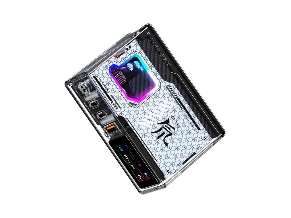 - Štýlové, priehľadné puzdro s podsvietením RGB, konfigurovateľné prostredníctvom aplikácie Goper (Bluetooth)