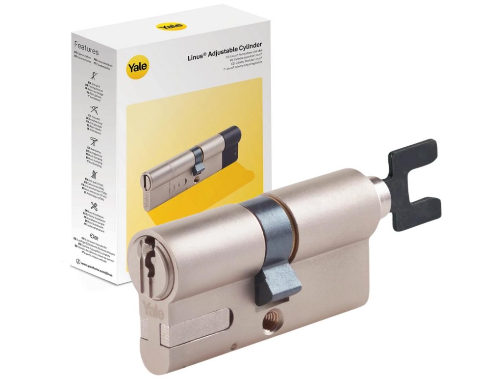 - Nastaviteľná cylindrická vložka Linus® - zaručuje spoluprácu so zámkom Linus® Smart Lock. Nie je potrebné merať vaše dvere, pretože nastaviteľná cylindrická vložka je navrhnutá tak, aby sa prispôsobila vašim dverám.