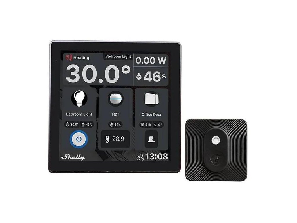 Sada ovládacieho panela Shelly Wall Display WiFi/BLU (čierna) + snímač BLU H&T (čierny)