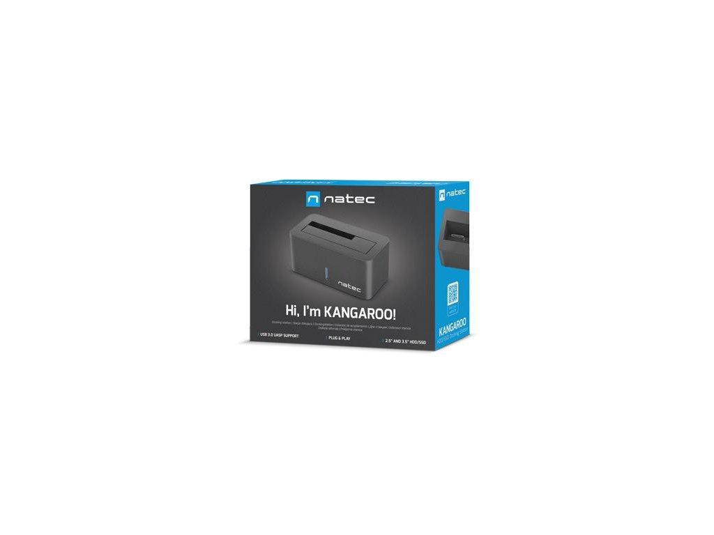 Dokovacia stanica Natec Kangaroo pripojená k počítaču prostredníctvom rozhrania USB 3.0 umožňuje prenos dát rýchlosťou až 5 Gb/s (SATA III). Možno k nej pripojiť všetky typy diskov SATA: 2,5", 3,5" so všetkými kapacitami. Je navrhnutý na prácu s vysokokapacitnými diskami. Je ideálny pre ľudí, ktorí potrebujú rýchly prístup k údajom, a nástroj na rýchle spracovanie a duplikovanie údajov v procesoch, ako je napríklad výroba videa a zálohovanie. Je tiež vhodným riešením pre aplikácie vyžadujúce častú výmenu diskov, jednoduchá inštalácia znižuje riziko poruchy. Výrobok sa vyznačuje moderným dizajnom a ergonomickým tvarom, vďaka čomu nezaberá veľa miesta.