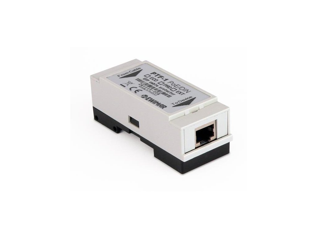 PTF-1-PRO/PoE/DIN je ochrana pre IP CCTV kamery a iné koncové zariadenia LAN namontované vo vonkajšom prostredí. Montuje sa na lištu DIN, takže ho možno inštalovať v interiéri alebo exteriéri v hermetických krytoch podľa prísnych noriem.