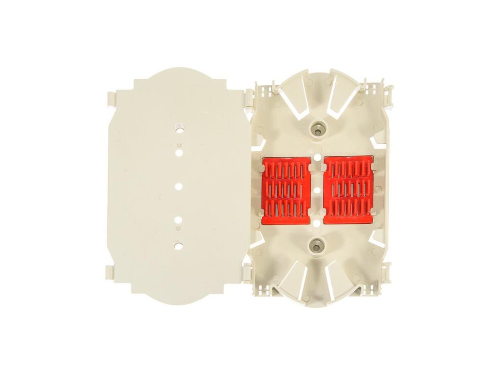 Zásobník na spájanie optických vlákien, určený na 12-24 spojov, vybavený červeným gumovým upevňovacím košom. Gumový hrebeň účinne chráni zvárané spojovacie plášte pred mechanickým poškodením počas inštalácie a prevádzky, čím zabezpečuje najvyššiu bezpečnosť inštalácie optických vlákien.