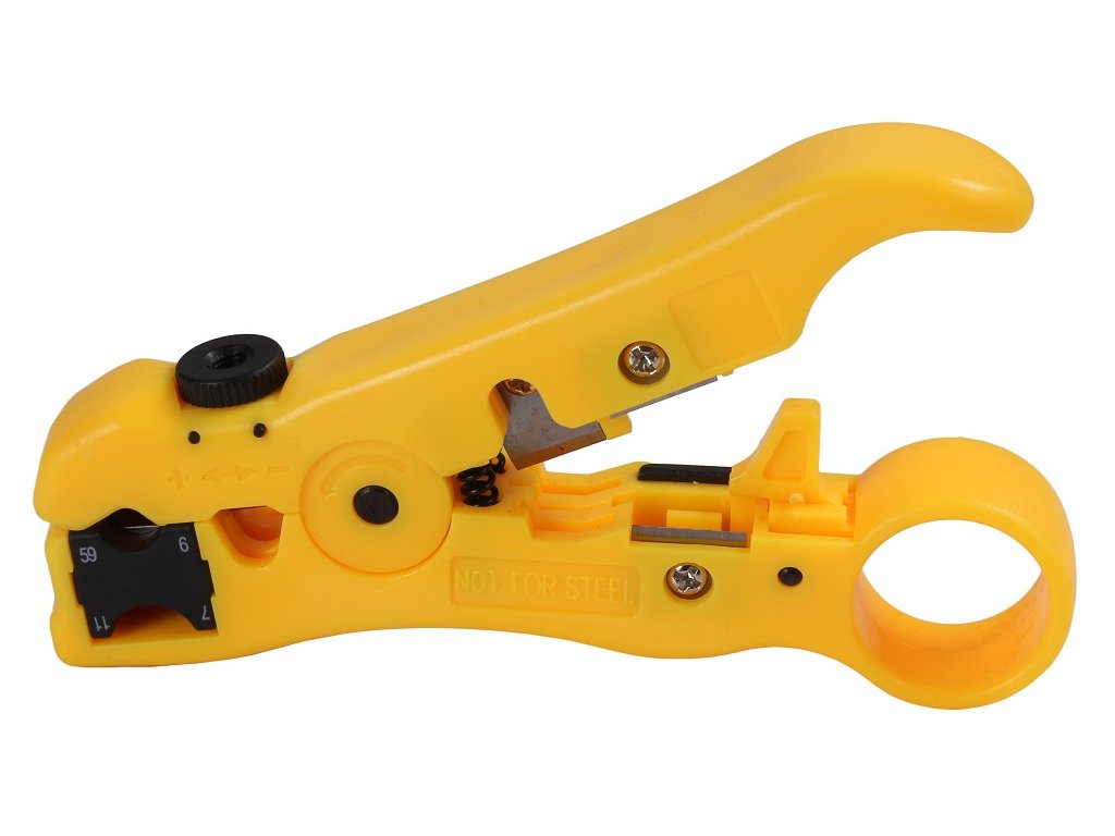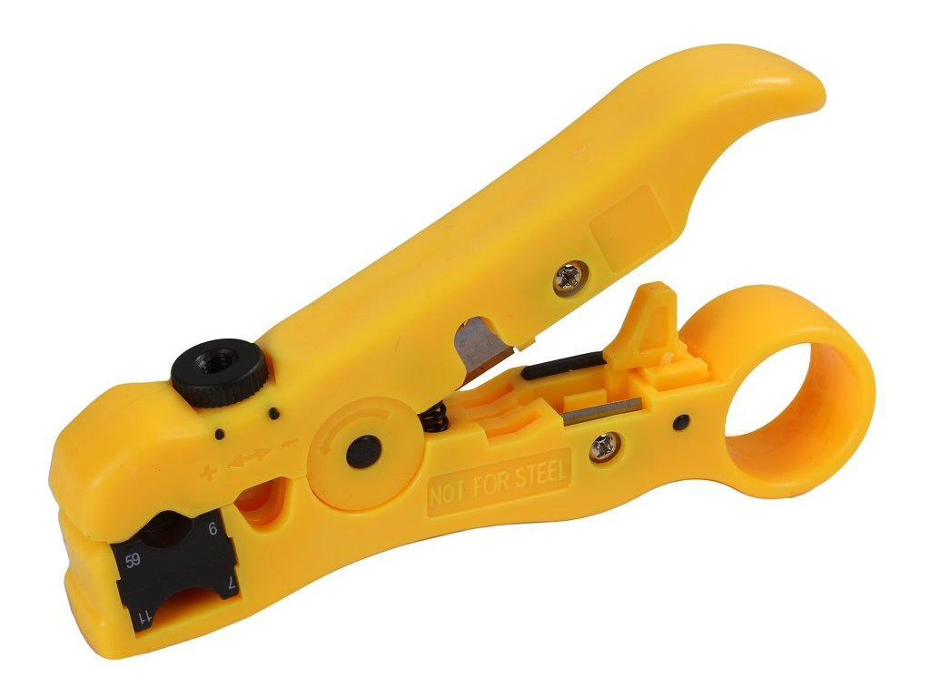 Nástroj na odizolovanie káblov RG59, RG6, RG11, UTP, FTP, STP vrátane rezačky.