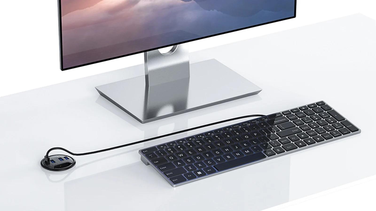 Vytvorte si ergonomickú pracovnú alebo hernú stanicu spolu so 4-portovým rozbočovačom od spoločnosti Orico! Zariadenie bolo špeciálne navrhnuté pre káblové priechodky v stoloch, takže nezaberá miesto na doske stola. Okrúhly tvar dokonale zapadá do otvorov s priemerom 6 cm. Stolový rozbočovač, podobne ako štandardné káblové priechodky, umožňuje pretiahnuť káble z monitora alebo iných periférnych zariadení.
