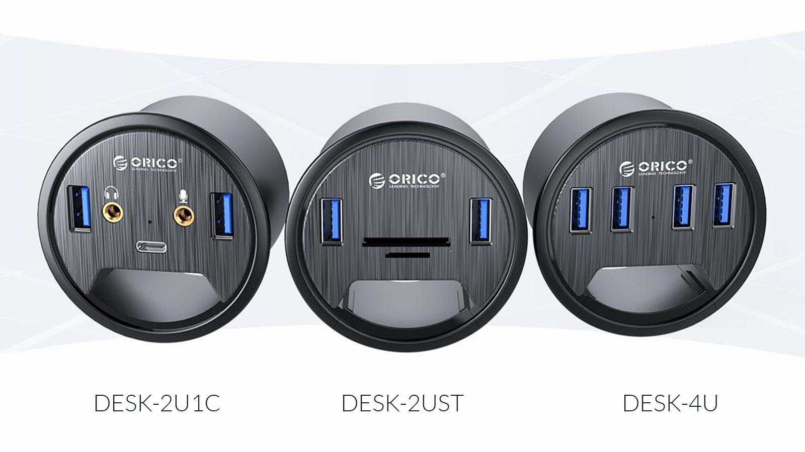 Chceli by ste okrem portu USB-A aj čítačku pamäťových kariet alebo výstup pre slúchadlá? Žiadny problém. Spoločnosť Orico má v ponuke tri dvojičky okrúhlych stolových rozbočovačov: