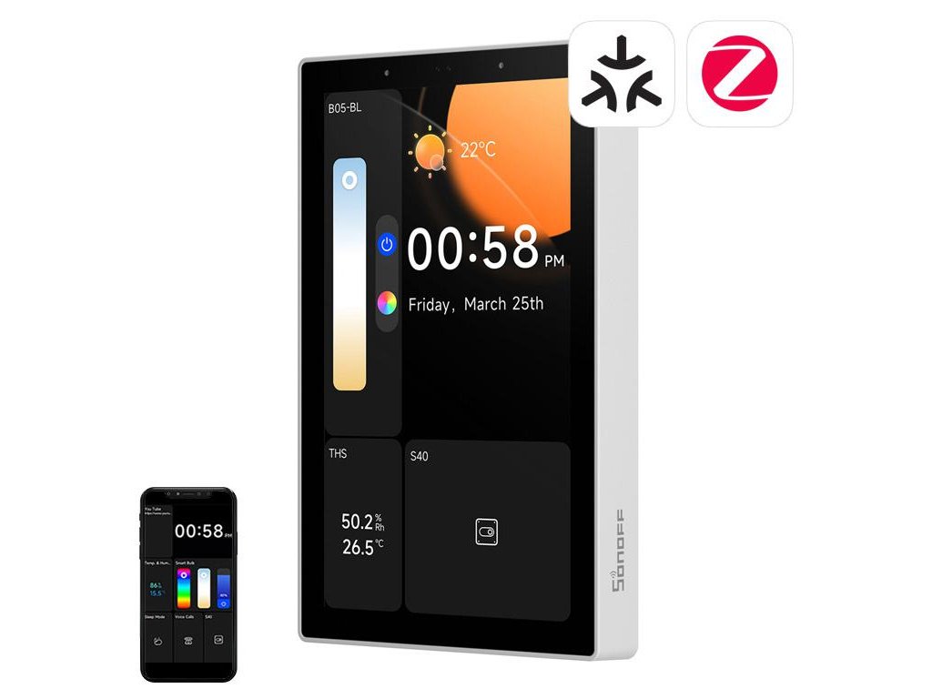 Ovládací panel SONOFF NSPanel Pro 120 integruje WiFi, Bluetooth, Zigbee 3.0 a Matter, čím poskytuje úplné ovládanie inteligentnej domácnosti. Vďaka 4,7" dotykovému displeju TFT LCD s rozlíšením 750 x 1334 px a intuitívnemu rozhraniu zariadenie umožňuje spravovať osvetlenie, teplotu, bezpečnostný systém, ako aj uskutočňovať hlasové hovory. Zabudovaný rozbočovač Zigbee 3.0 a ovládač Matter zaručujú širokú kompatibilitu, ktorá umožňuje pridanie zariadení od rôznych výrobcov. Podpora kamier, monitorovanie spotreby energie a konfigurovateľné bezpečnostné režimy robia z panela srdce modernej automatizovanej domácnosti.