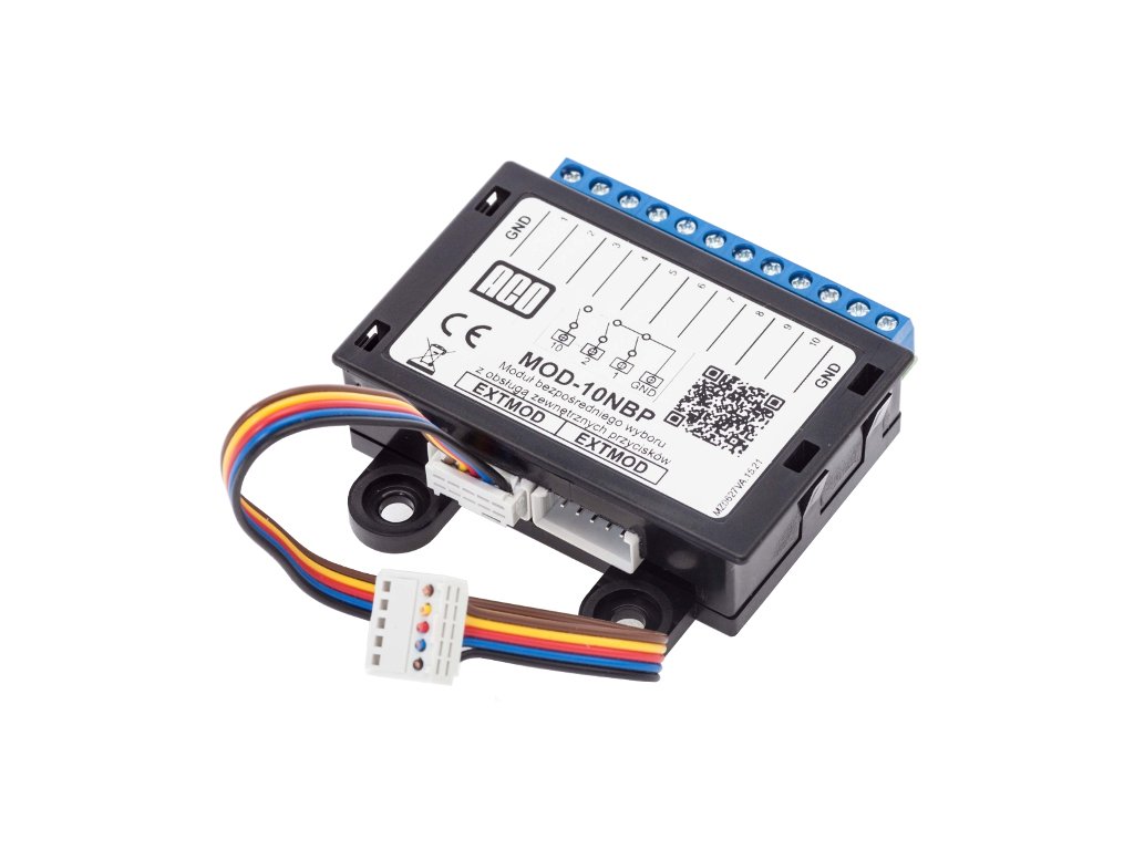 ACO MOD-10NBP je digitálny interkomový modul ACO, ktorý umožňuje pripojenie 10 externých tlačidiel priamej voľby.Je určený na zabudovanie. Je pripojený priamo k modulu volania MOD-SPK-P. Modul podporuje až 10 tlačidiel (adresovaných v rozsahu 1-255), ktorých adresy sa programujú prostredníctvom počítača pomocou kábla USB. Moduly MOD-10NBP možno kombinovať, čím sa zvýši počet podporovaných tlačidiel (maximálne 150 tlačidiel, t. j. 15 modulov). Modul podporuje tlačidlá s normálne otvoreným obvodom (typ NO) pripojené jedným spoločným vodičom (GND). Je kompatibilný s ústredňami CDN, Inspiro a Familio P/PV.