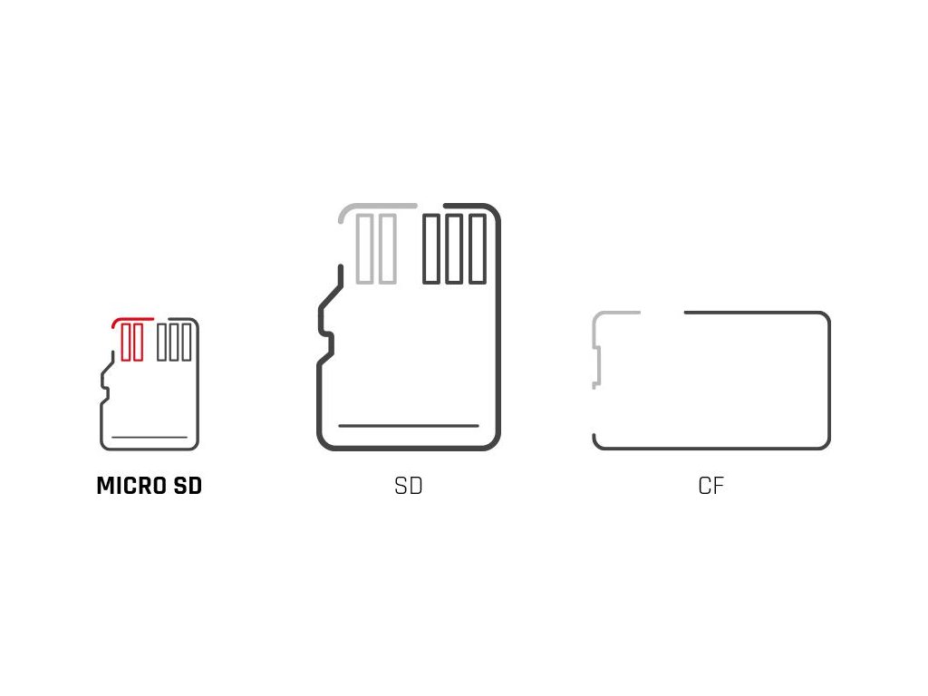 Pamäťová karta v najkompaktnejšej veľkosti MicroSD je skvelou aplikáciou. Bude dokonale fungovať so zariadeniami, ako sú smartfóny, tablety, športové kamery alebo iné prenosné zariadenia. Vďaka svojej kompaktnej veľkosti majú karty MicroSD minimálnu spotrebu energie. Navyše je karta tejto veľkosti často odolná voči pádu. Veľmi malé rozmery 11 x 15 mm tiež prospievajú pohodlnému ukladaniu.