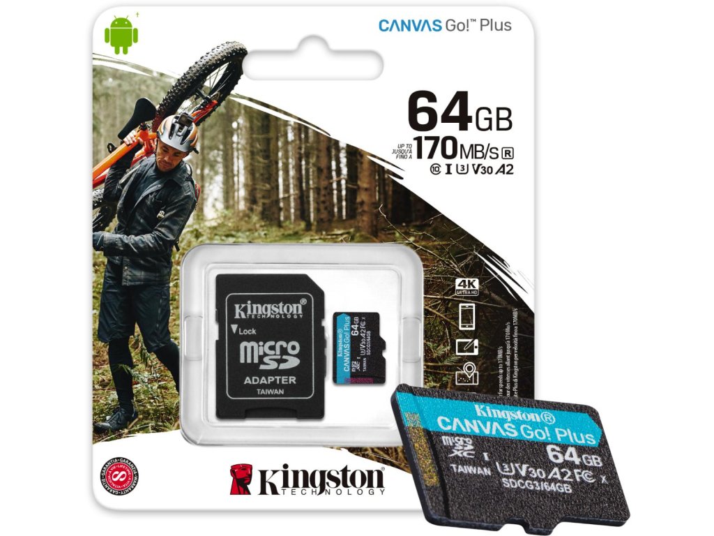 Pamäťová karta Kingston Canvas Go Plus microSD 64GB 170/70MB/s + adaptér