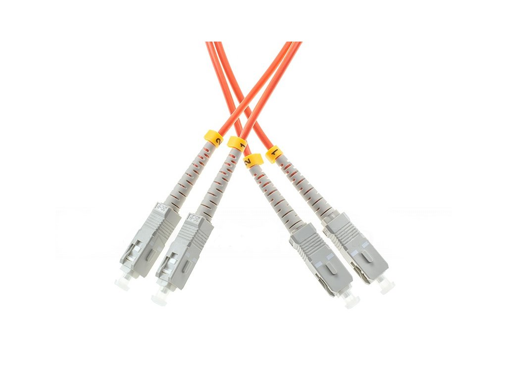 DUPLEX multimódové optické vlákno patchcord typ SC/UPC-SC/UPC konektory. Patchcord umožňuje napríklad prepojenie optických portov v dátových komunikačných rozvádzačoch.