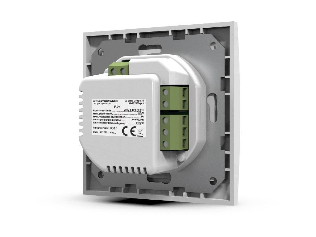 Pevne pripojený dvojstavový izbový regulátor biely F-2Z v1 Tech controllers