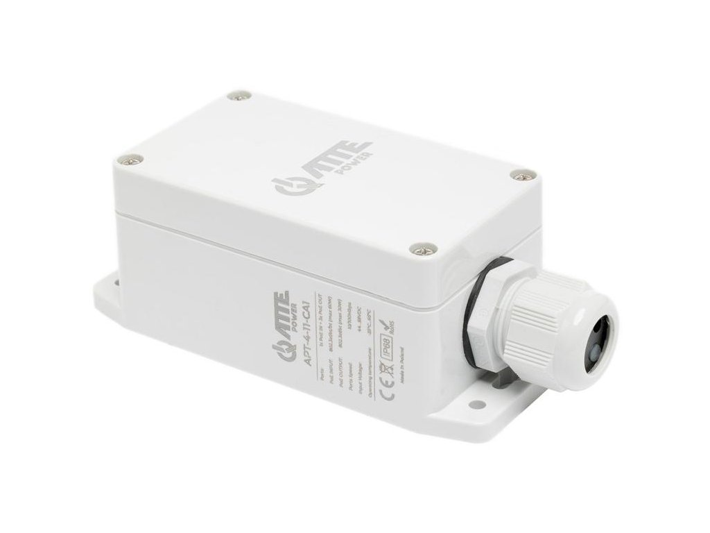 | Aplikácie | IP CCTV, vonkajšie a priemyselné inštalácie, rozdeľovač a rozširovač signálu PoE |
