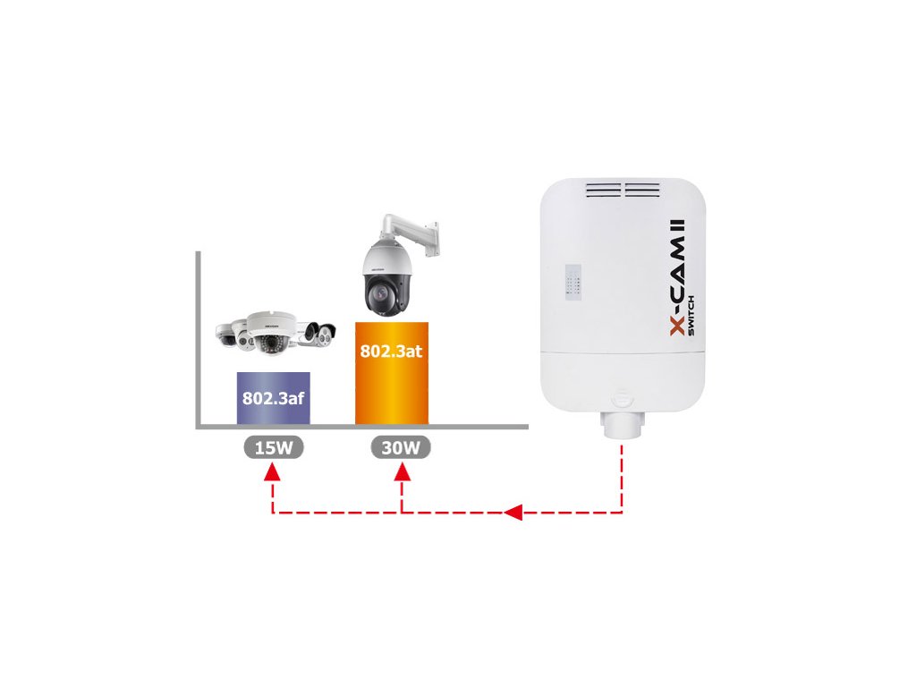 Väčšina modelov X-CAM II poskytuje až 60W napájanie PoE 30W /port
