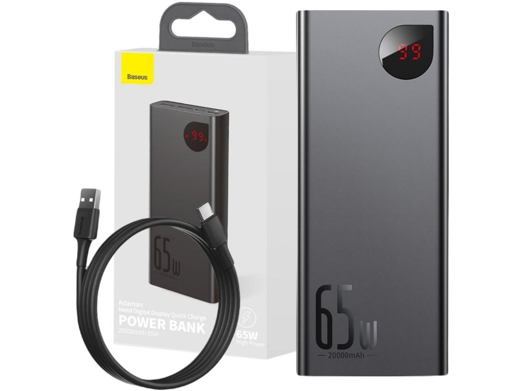 Powerbank Baseus Adaman Digital Display PPIMDA-D01 20000mAh 65W PD QC 4.0 2x USB-A 1x USB-C + KÁBEL