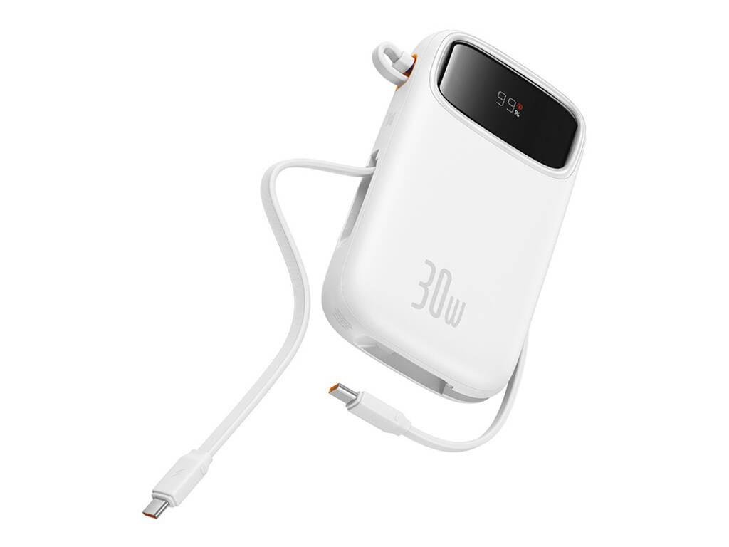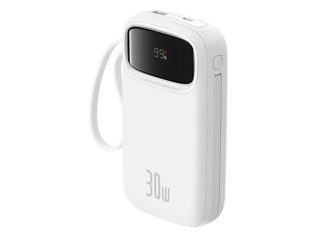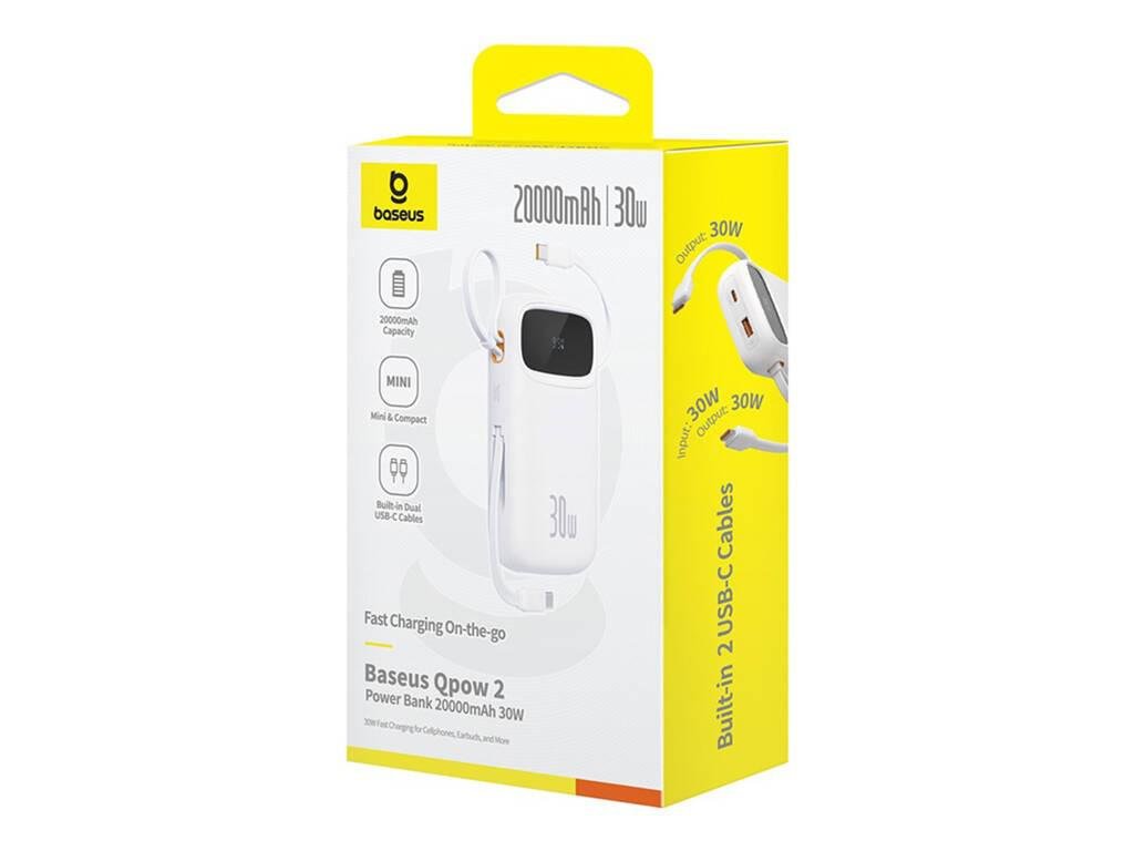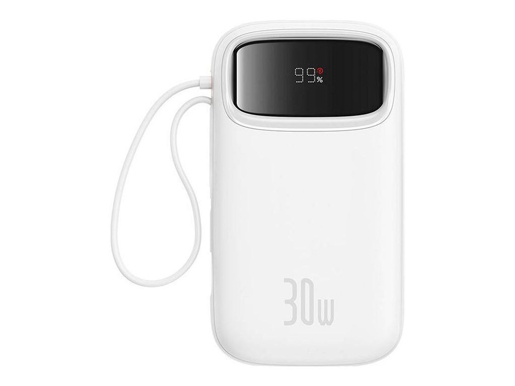 Powerbank Baseus QPow 2 10000mAh 30W s 2 zabudovanými káblami USB-C - biela