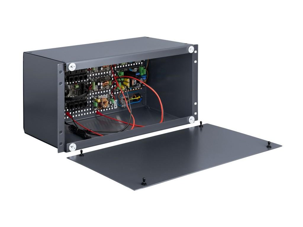| Bývanie | Skriňa BCS-RACK5U, materiál krytu SHELL - 0,8 mm oceľový plech lakovaný vo farbe, materiál krytu COVER - 2 mm hliníkový plech lakovaný v grafitovej farbe (RAL 7024), systém dierovaný 4,8 mm otvormi v 10,8 mm žalúzii |