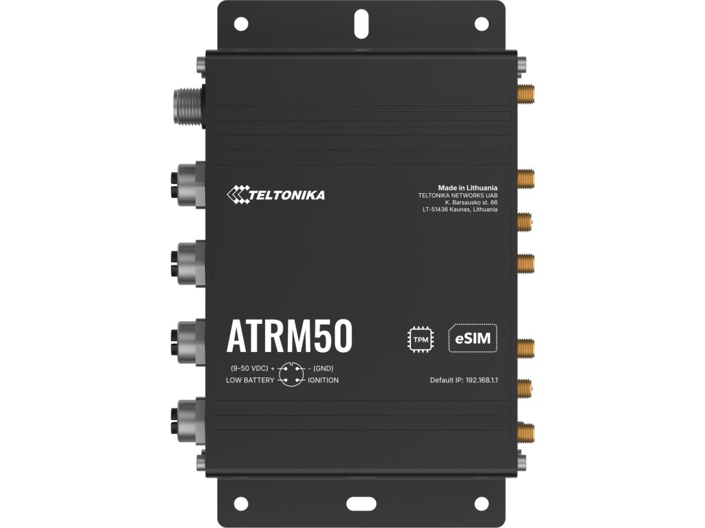 Teltonika ATRM50 je priemyselný smerovač, ktorý bol vyvinutý na použitie v náročných podmienkach. Robustný kryt chráni pred mechanickým poškodením, ako aj pred účinkami nepriaznivých poveternostných podmienok. Tento model bude ideálny pre oblasti, kde je najdôležitejšia spoľahlivosť a odolnosť.