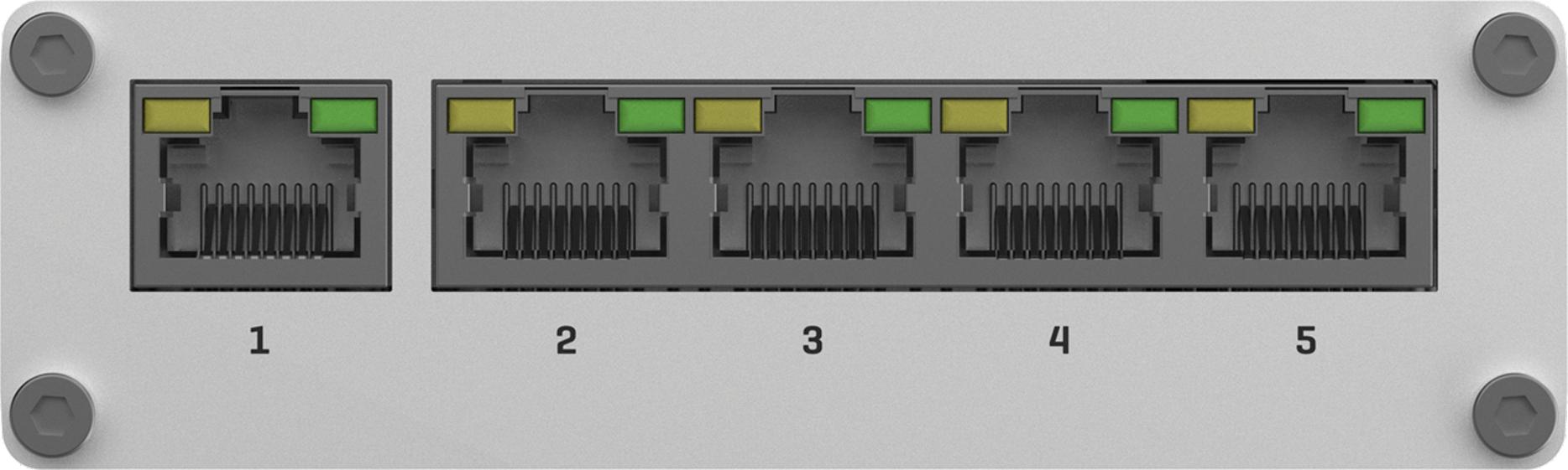 - 5 gigabitových ethernetových portov (5xGE) - poskytuje rýchle a efektívne sieťové pripojenie.