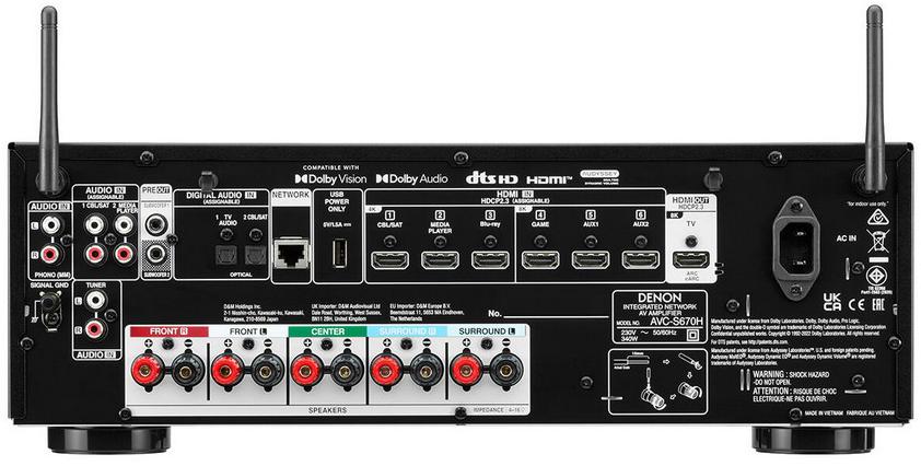 AVC-S670H ponúka neuveriteľné 8K video, priestorový zvuk s vysokým rozlíšením a dekodéry Dolby TrueHD a DTS HD Master Audio. Navyše vďaka zabudovanému systému HEOS® môžete streamovať a zdieľať hudbu do bezdrôtových reproduktorov Denon Home v iných miestnostiach. Je to srdce vášho domáceho kina.