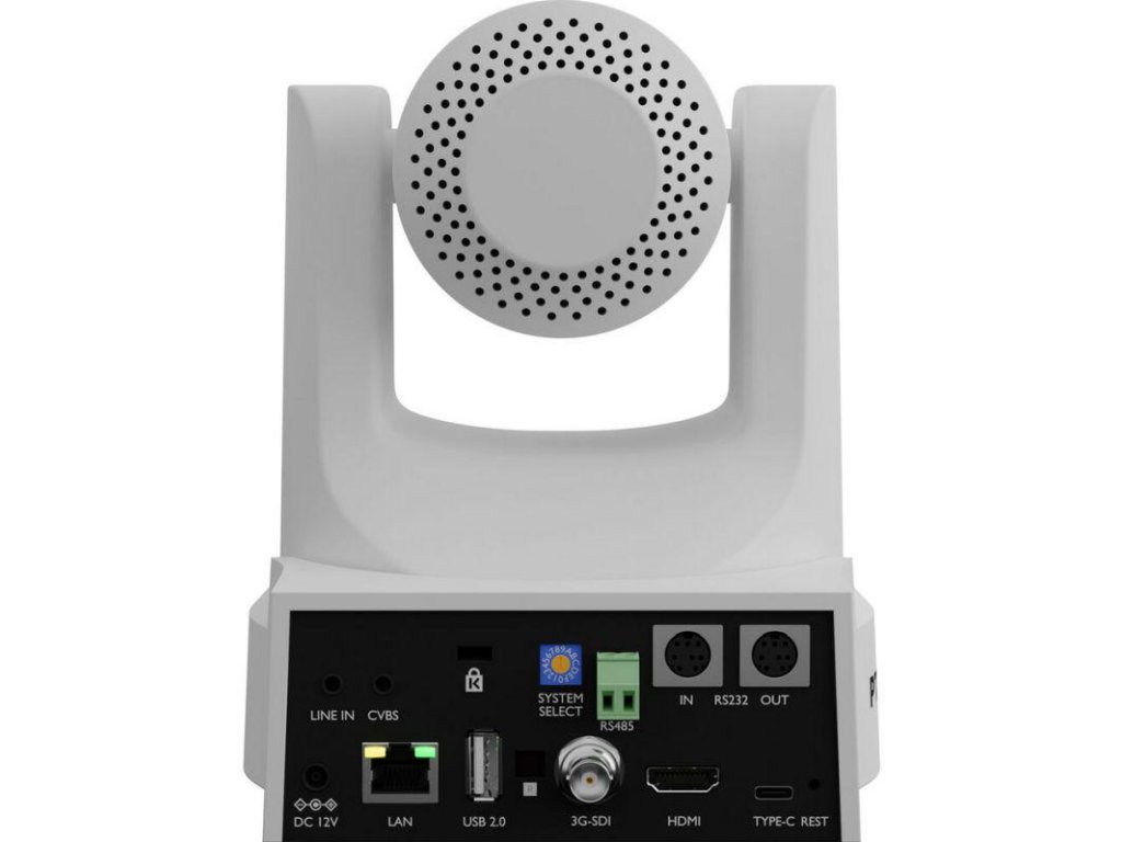 - 2x RS232 (vstup/výstup, Mini-DIN, do 30 m, VISCA, Pelco-D/P)
