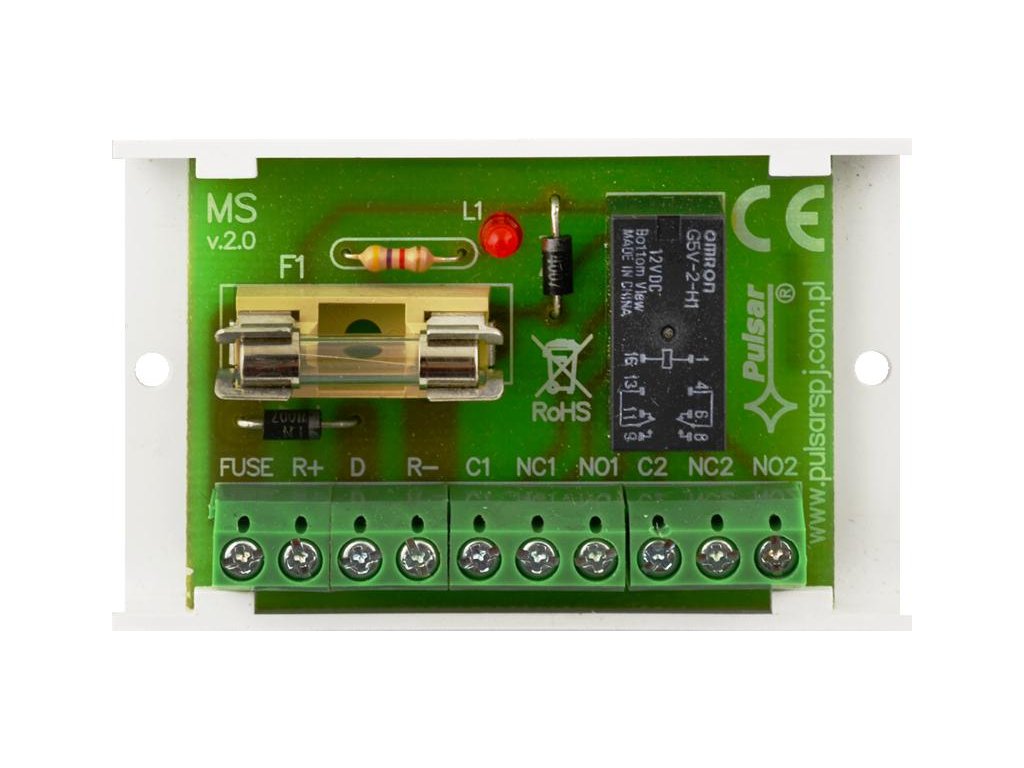 MS reléový modul Napájanie: 10÷14VDC Relé: 1x REL-2x C/NO/NC, 2A@30VDC/50VAC Ochrana: poistka 1,5A Záruka: 2 roky od dátumu výroby Ochrana: OLP, SCP Technický výstup typu OC a relé: FPS - signálDodatočné parametre