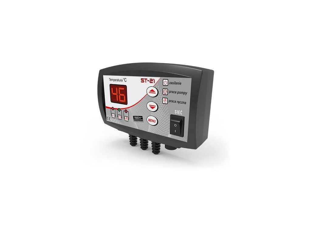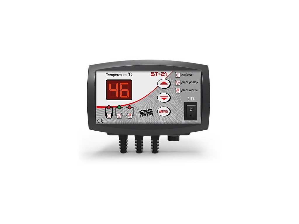 Regulátor ST-21 s LED displejom je určený na ovládanie čerpadla vodného okruhu ústredného kúrenia. Úlohou regulátora je zapnúť čerpadlo, keď teplota dosiahne nastavenú hodnotu, a vypnúť ho - ak sa kotol ochladí pod nastavenú hodnotu o hodnotu nastavenej hysterézie. Takýto režim prevádzky zabraňuje zbytočnej prevádzke čerpadla, čím sa šetrí elektrická energia, ako aj predlžuje životnosť čerpadla a zvyšuje jeho spoľahlivosť. Regulátor ST-21 môže fungovať aj ako termostat tým, že po dosiahnutí nastavenej teploty vypne čerpadlo. Regulátor je vybavený aj funkciou ANTISTOP, ktorá zabraňuje stagnácii obehového čerpadla počas mimosezóny (čerpadlo sa zapína každých približne 10 dní na 1 minútu). Ďalšou ochranou je funkcia anti-freeze, ktorá zabraňuje zamrznutiu vody v inštalácii; keď teplota klesne pod 5 °C, čerpadlo sa trvalo zapne.