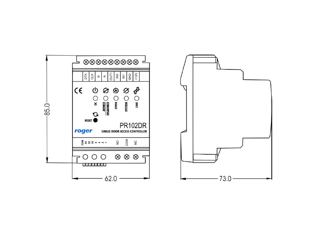 Riadiace jednotky série PR102DR môžu pracovať ako samostatné jednotky kontroly prístupu, ako aj v integrovanom sieťovom systéme kontroly prístupu s centrami kontroly prístupu ROGER. V samostatnom režime môžu ovládače PR102DR dohliadať na obojsmerný priechod bez potreby komunikácie s nadradenými zariadeniami, udalosti sa zaznamenávajú do vnútornej vyrovnávacej pamäte ovládača a funkcie súvisiace s časom sú riadené jeho vnútornými hodinami. Systém kontroly prístupu založený na kontroléroch PR102DR možno spravovať lokálne pomocou komunikačných rozhraní COM, USB alebo prostredníctvom počítačovej siete WAN/LAN. Riadiace jednotky PR102DR môžu pracovať s 1 alebo 2 čítačkami série PRT (Roger) a sú prispôsobené na inštaláciu na lištu Din 35 mm.