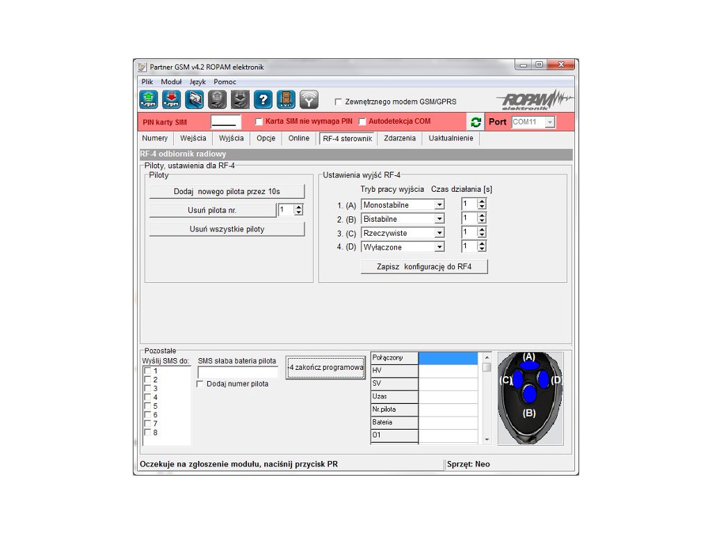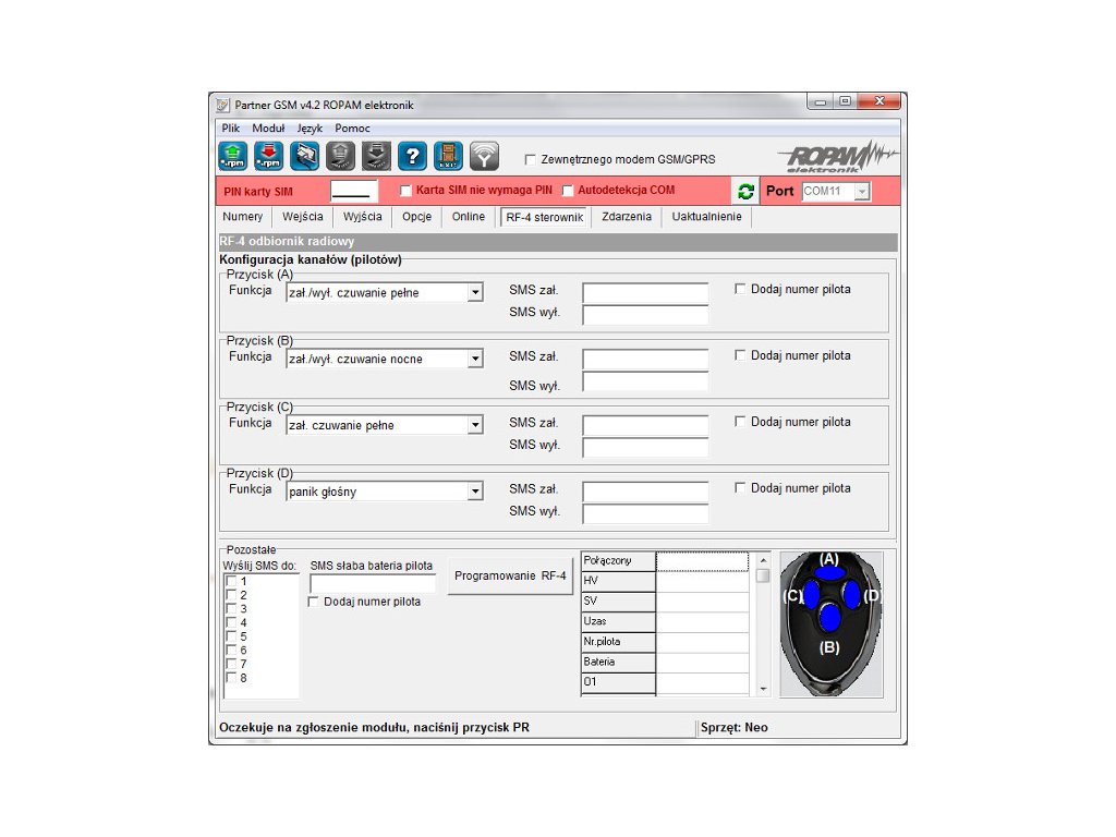 - v kombinácii s NeoGSM alebo OptimaGSM RF-4 vytvára flexibilný poplachový systém ovládaný rádiovým diaľkovým ovládaním,
