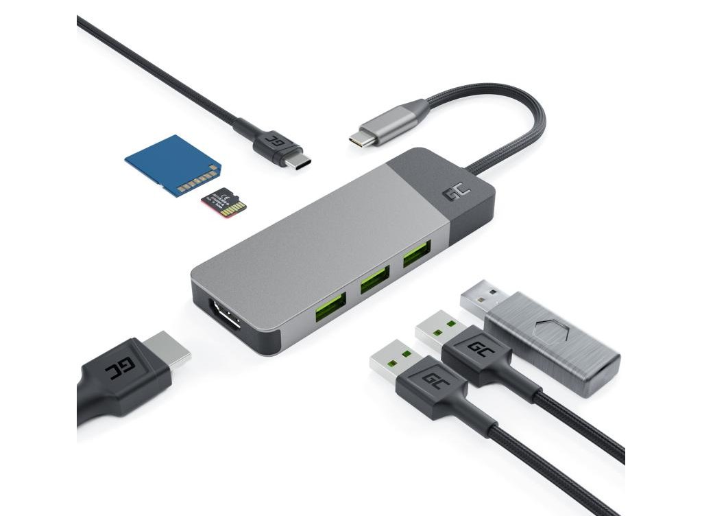 Rozbočovač USB 7v1 Green Cell Connect 3x USB-A 3.1 HDMI 4K 60Hz 1x USB-C PD 85W
