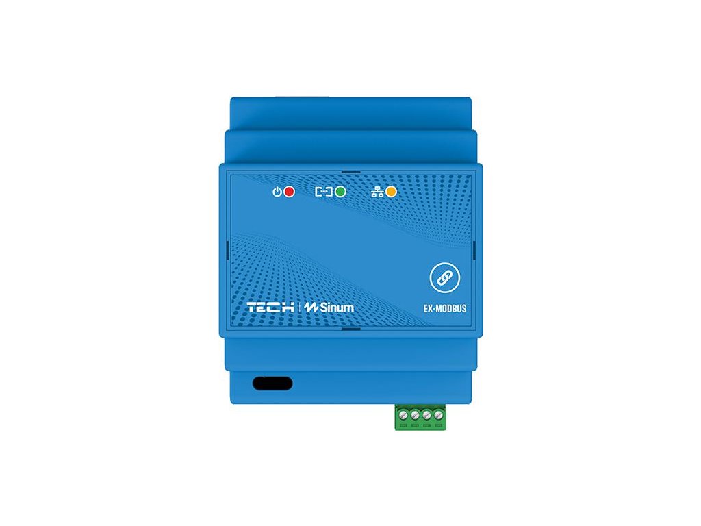 EX-MODBUS je zariadenie, ktoré sa používa na rozšírenie dosahu signálu zariadení MODBUS. Pomocou neho môžeme rozšíriť pracovnú oblasť systému. Jeho úlohou je zhromažďovať informácie z pripojených zariadení MODBUS a následne ich odosielať prostredníctvom siete LAN alebo WiFi do hlavného zariadenia - ústredne Sinum.