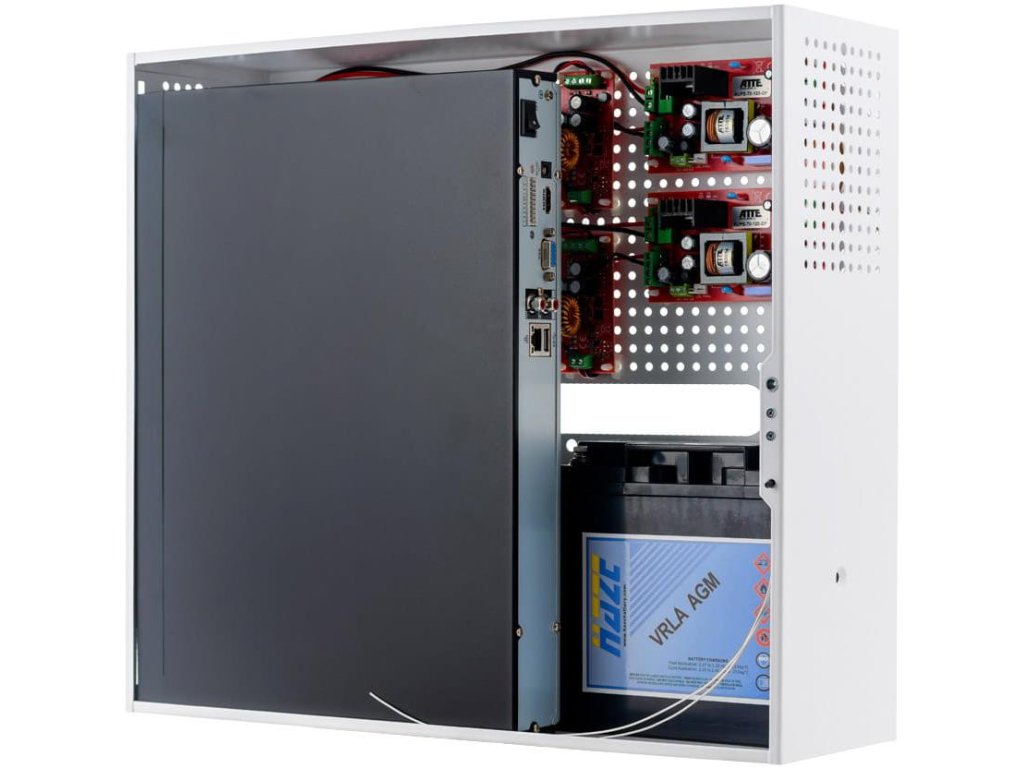 Sada až 16 IP kamier vo vnútornom kryte ABOX-H (priestor pre NVR), napájanie 192 W (2x96 W), PoE switch 18 portov (16xPoE 10/100Mbps + 2xGigabit Uplink), elektronické poistky, typ IP-16-20-H