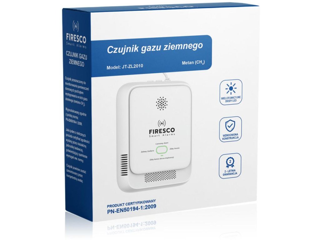 - Dodržiavanie noriem: zariadenie Firesco JT-ZL2010 je vyrobené v súlade s poľskou normou PN-EN50194-1:2009 , čo potvrdzuje jeho súlad s predpismi a bezpečnostnými normami. Má tiež c osvedčenie potvrdzujúce splnenie týchto požiadaviek vydaný nezávislým európskym skúšobným orgánom.