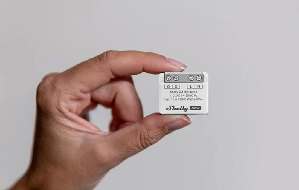 Vďaka svojmu miniatúrnemu puzdru (len 29 × 34 × 16 mm) sa Shelly EM Mini Gen4 ľahko zmestí do štandardných inštalačných krabíc a malých rozvádzačov. Možno ho inštalovať aj tam, kde sa iné zariadenia nezmestia - napríklad za zásuvku alebo do krabice pri elektromere.