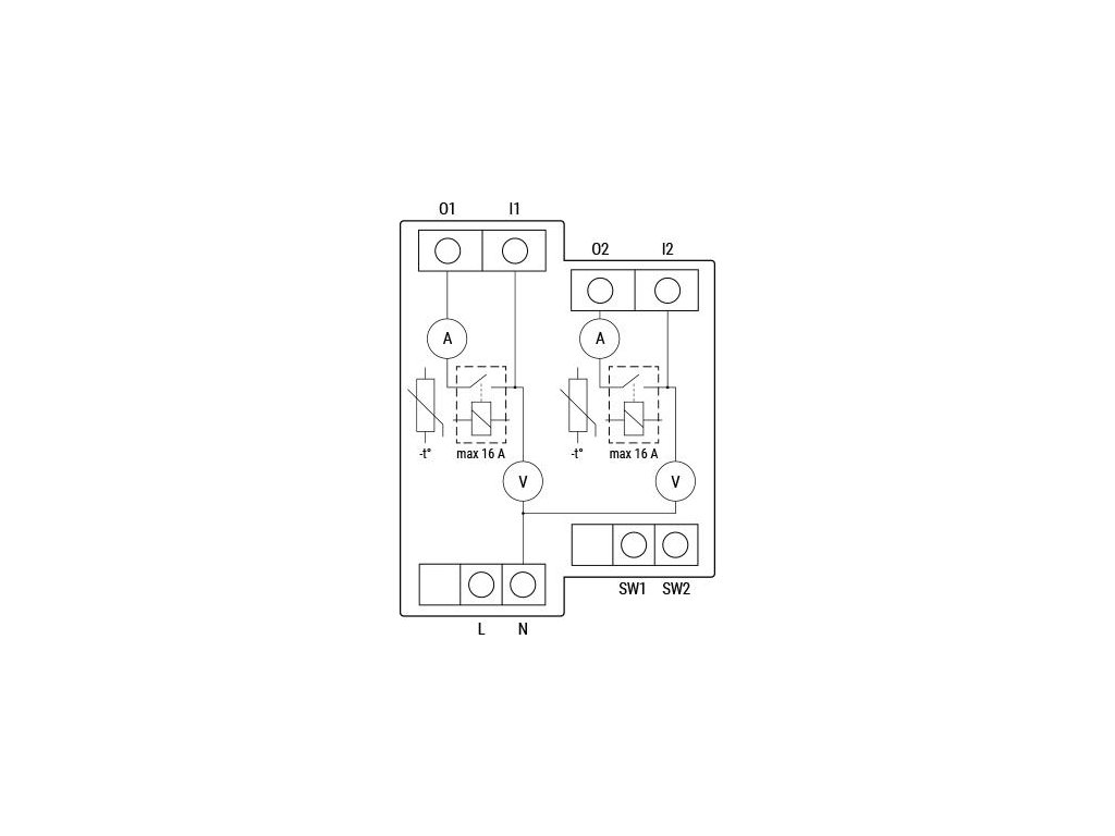 - Funkcie merania: napätie, prúd, energia, snímač teploty