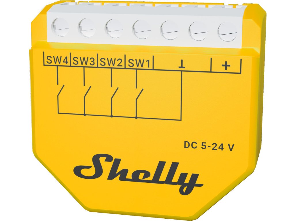 Shelly Wave i4 DC US LR je modul 4 digitálnych nízkonapäťových vstupov (5-24 V DC) určený na spúšťanie scén a riadenie automatizácie v systémoch Z-Wave Mesh alebo Long Range. Umožňuje prepojenie s tlačidlami a spínačmi (suchý kontakt), čo umožňuje nezávislé ovládanie až 4 udalostí z jednej skrinky/miesta - ideálne pre profesionálne, OEM, komerčné a pokročilé domáce inštalácie.