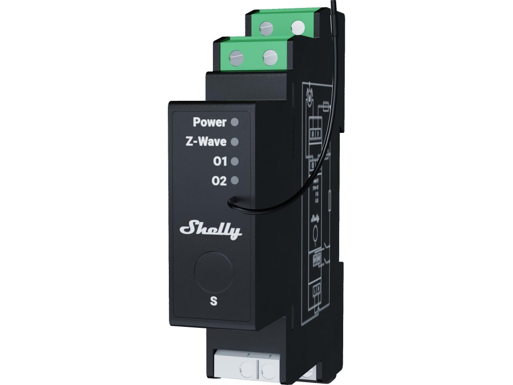 Shelly Wave Pro 2PM US LR - dvojkanálové relé DIN Z-Wave Mesh/Long Range s plným meraním energie (2 × 12,5 A) a pokročilými bezpečnostnými funkciami