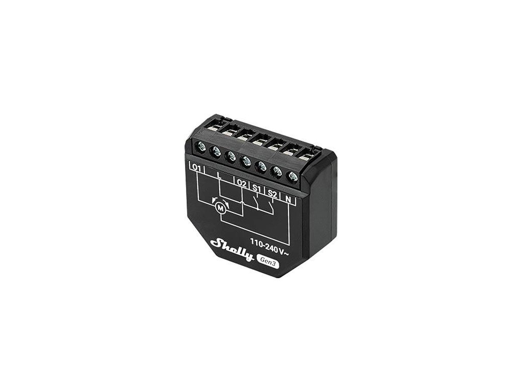 Shelly Shutter je kompaktný, moderný ovládač na automatizáciu žalúzií, roliet a markíz. Umožňuje pohodlné ovládanie slnečných clôn z aplikácie, rozvrhov alebo na diaľku prostredníctvom Wi-Fi a Bluetooth s monitorovaním spotreby energie v reálnom čase.